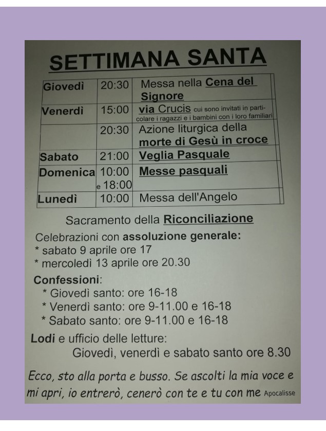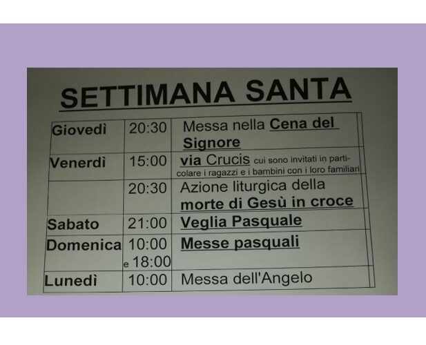 SETTIMANA SANTA a San Giuseppe Pubblicato il 8 Aprile 2022 Clicca sul titolo “SETTIMANA SANTA a San Giuseppe” per vedere il programma completo Condividi:FacebookGoogleTwitterLinkedin