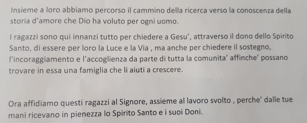 – hanno chiesto il sostegno , l’incoraggiamento e l’accoglienza da parte di tutta la comunità, per trovare in essa una famiglia che li aiuti a crescere.