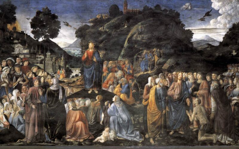 Immagine: Cosimo Rosselli , Il sermone della montagna, affresco, 1480-1481, Roma, Palazzo Apostolico, Cappella Sistina.