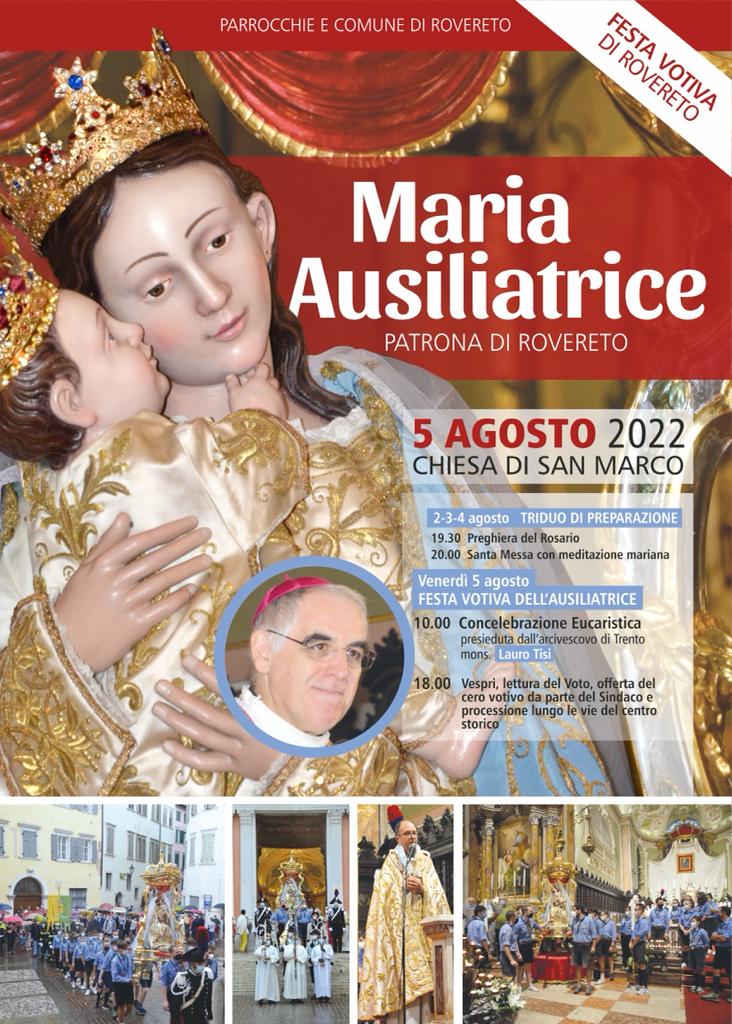 Il 5 agosto alle ore 18 la Festa roveretana dell’Ausiliatrice si concluderà con i Vespri e con il rinnovo del voto della città a Maria e la processione in centro storico.