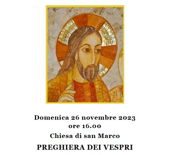 Domenica 26 novembre 2023 alle ore 16.00 nella Chiesa di san Marco PREGHIERA DEI VESPRI con lettura dell’Atto di Consacrazione della Città.